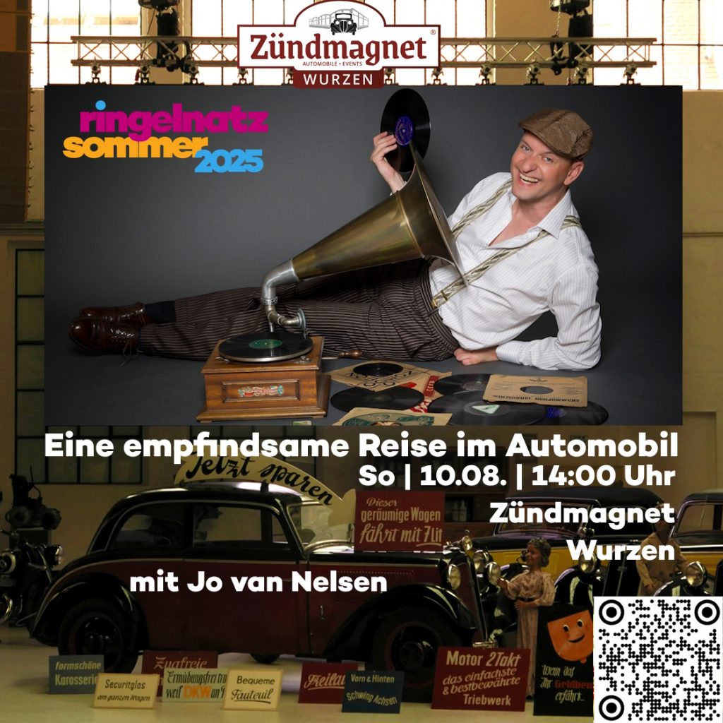 Das Finale steigt am Sonntag im Zündmagnet Wurzen. Eingebettet in das einmalige Ambiente zwischen historischen Automobilen in der Dresdener Straße 64 erwartet die Gäste der überaus heitere Bericht der Rundreise von Otto Julius Bierbaum von Berlin nach Capri und zurück. In einem Phaeton der Adler-Werke war er der erste, der mit einem Automobil die Alpen überquerte. Vergnügliche Ansichten über die durchquerten Länder, ihre Bewohner und das Reisen an sich, sowie die berichteten Tücken mit der neuen Technik bilden das Kernstück in Bierbaums fabulierfreudigem Bericht, der uns heute Staunen und Lachen zugleich lässt. Jo van Nelsen hat die schönsten Stellen aus Bierbaums legendärem Reisebuch zu einer Tour de Force zusammengefasst, die er mit zeitgenössischen Postkarten und Bierbaums Fotos der Reise auf der großen LED-Wand, sowie Musik der Jahrhundertwende direkt vom Grammophon präsentieren wird. Und natürlich kann auch ein Blick auf die ausgestellten historischen Automobile der Ausstellung geworfen werden.