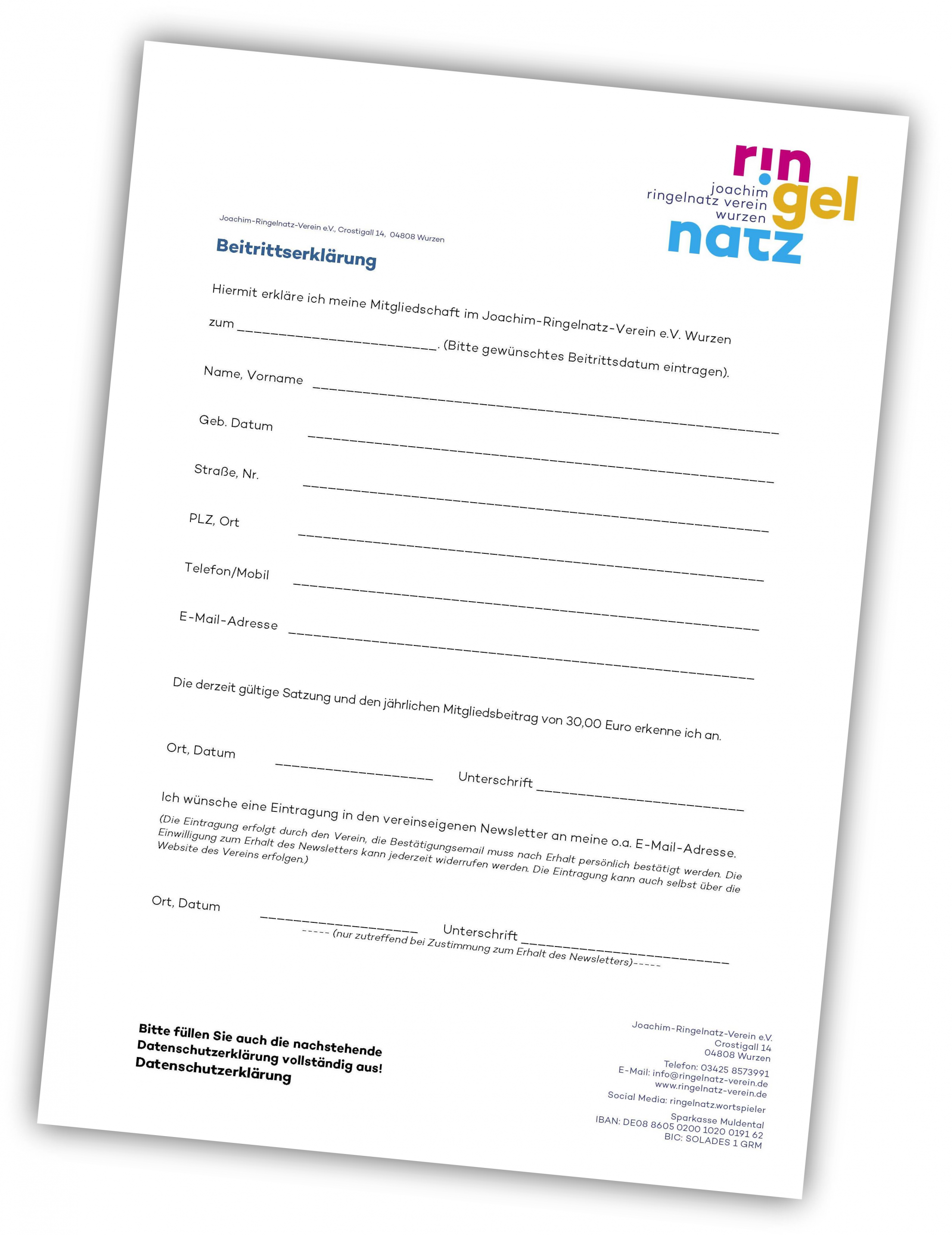 Wir freuen uns über jedes neue Mitglied im Joachim-Ringelnatz-Verein e.V.!
